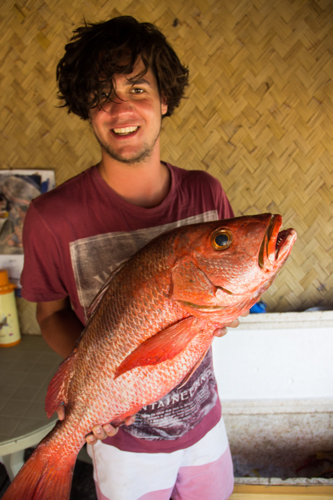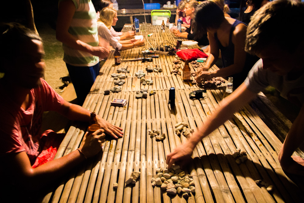 De volgende morgen werd ik al vroeg wakker van de opkomende zon (5 uur!!). Na me nog een keer omgedraaid te hebben werden we wakker gemaakt voor het ontbijt. Chef Becky had zich weer uitgesloofd voor een heerlijke hartige omelet en brood. Na het ontbijt was het tijd om onze spullen weer op te ruimen en weer naar de boot te zwemmen. Nadat we onze eerste stop hadden gemaakt was het tijd om vis te gaan kopen in een klein vissersdorpje. Heel indrukwekkend om te zien hoe de mensen leven op zo’n klein eilandje! De mensen leven heel tranquil en zijn heel relaxed. Mooi om te zien met hoe weinig deze mensen zich redden en met hoeveel mensen ze in een heel klein huisje wonen. Na twee gigantische vissen te hebben gekocht zijn we weer verder gegaan richting ons volgende basecamp. Dit basecamp was iets groter als ons vorige basekamp. Met grote gezamenlijke hutten om in te slapen dit keer. Na het eten zijn we met een groep gaan pokeren. We hadden geen fishes mee, dus hebben we zelf “fiches” gezocht op het strand. Nadat Jorn had verloren zijn we naar de lokale Videokebar geweest (Karaoke). Een erg gezellige avond met iets teveel rum en bier en heelveel gezongen te hebben, rollen we onze klamboe in om de volgende morgen redelijk brak door te brengen op de boot.
