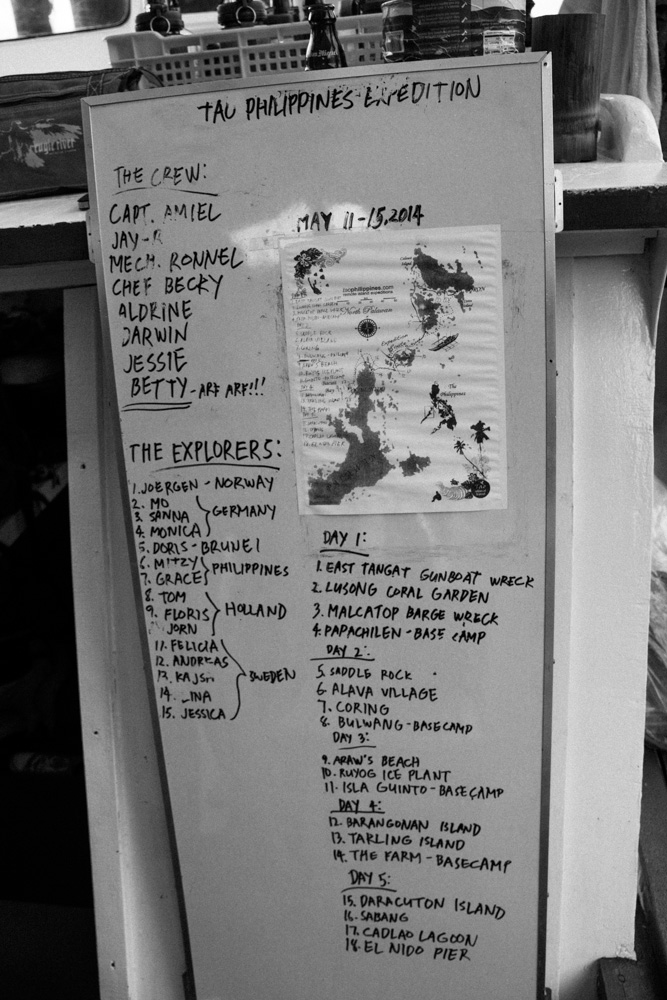 Op zondag was het dan zover, tijd voor het deel waar we het meest naar hadden uitgekeken: De TAO trip. De komende 5 dagen zouden wij met een groep van 15 mensen + 8 mensen bemanning doorbrengen op een boot. Met 5 Zweden, 1 Noor, 3 Duitsers, 2 Filippijnen en 1 iemand uit Brunei overdag varen, snorkelen en kanoën en in de avond voor anker gaan voor een klein eiland om daar te slapen. De dag ervoor hadden we al introductie gehad en hadden we de groep al beetje leren kennen. Elke dag maakte we ongeveer 3 of 4 stops om bijvoorbeeld te snorkelen. Zo voeren we langzaam van Coron naar het zuiden richting El Nido.