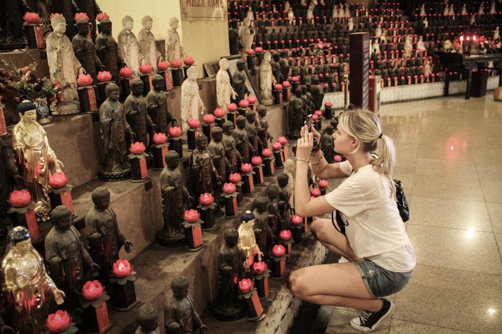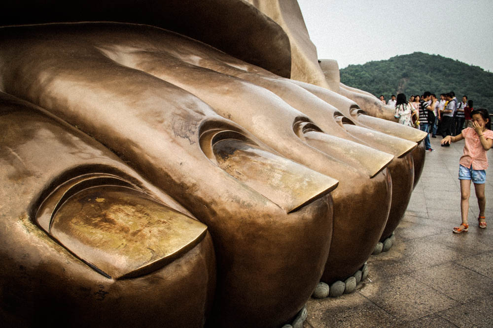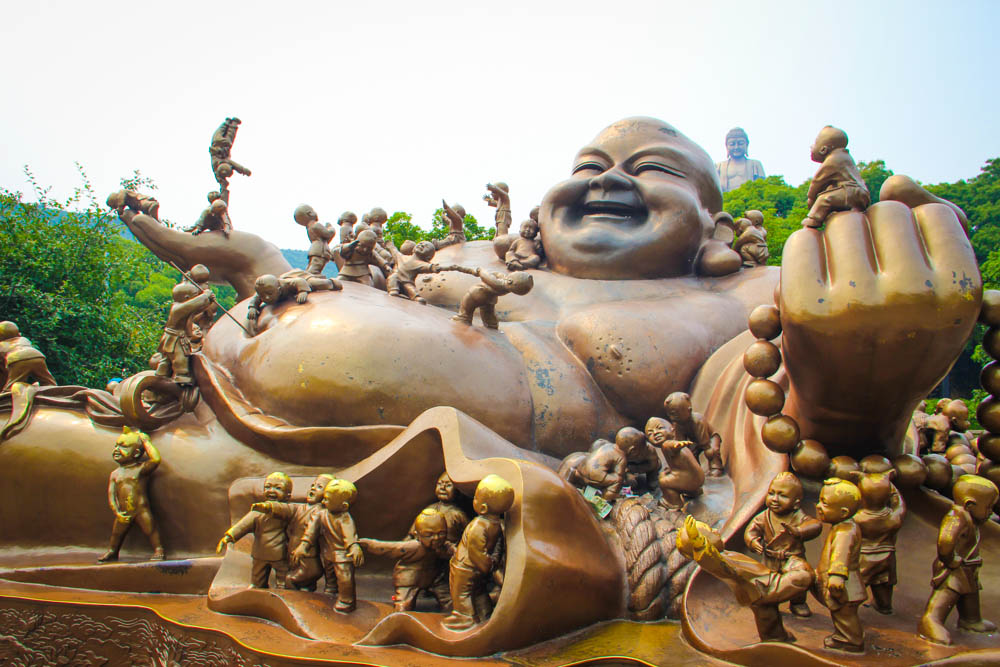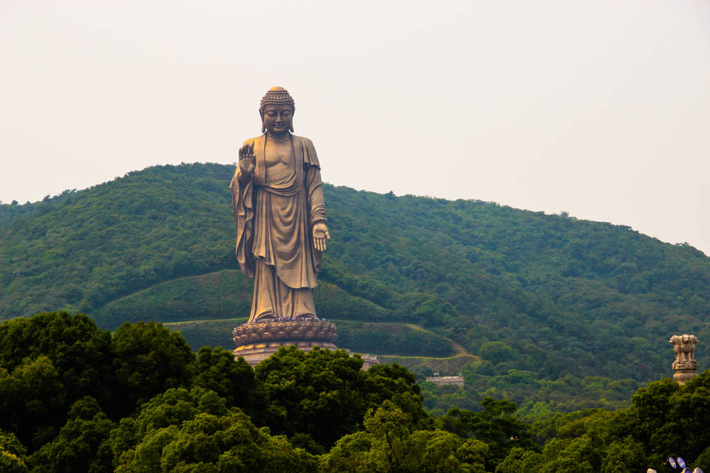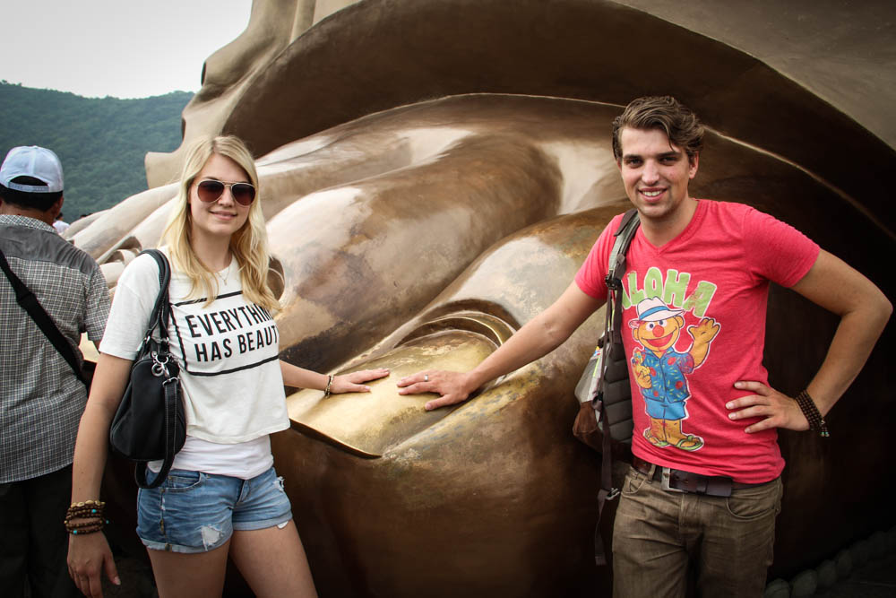 Zodra we in de buurt kwamen van het park konden we het al zien, het letterlijk hoogtepunt van het park, een gigantische bronzen buddha van 88 meter hoog. Het is de grootste staande buddha van de wereld. Het park bestaat natuurlijk niet alleen uit deze buddha, het hele park staat vol met beelden van buddhas en tempels. Een erg mooi en indrukwekkend park om te zien. Vooral als je aan de voet van de grote buddha staat besef je pas hoe groot de buddha eigenlijk is!
